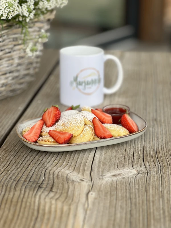 Ihr könnt bei mir nicht nur leckeren Kuchen und Kaffee genießen. Es gibt auch leckere holländische Poffertjes, die so locker und luftig sind, dass sie Jung und Alt überzeugen.